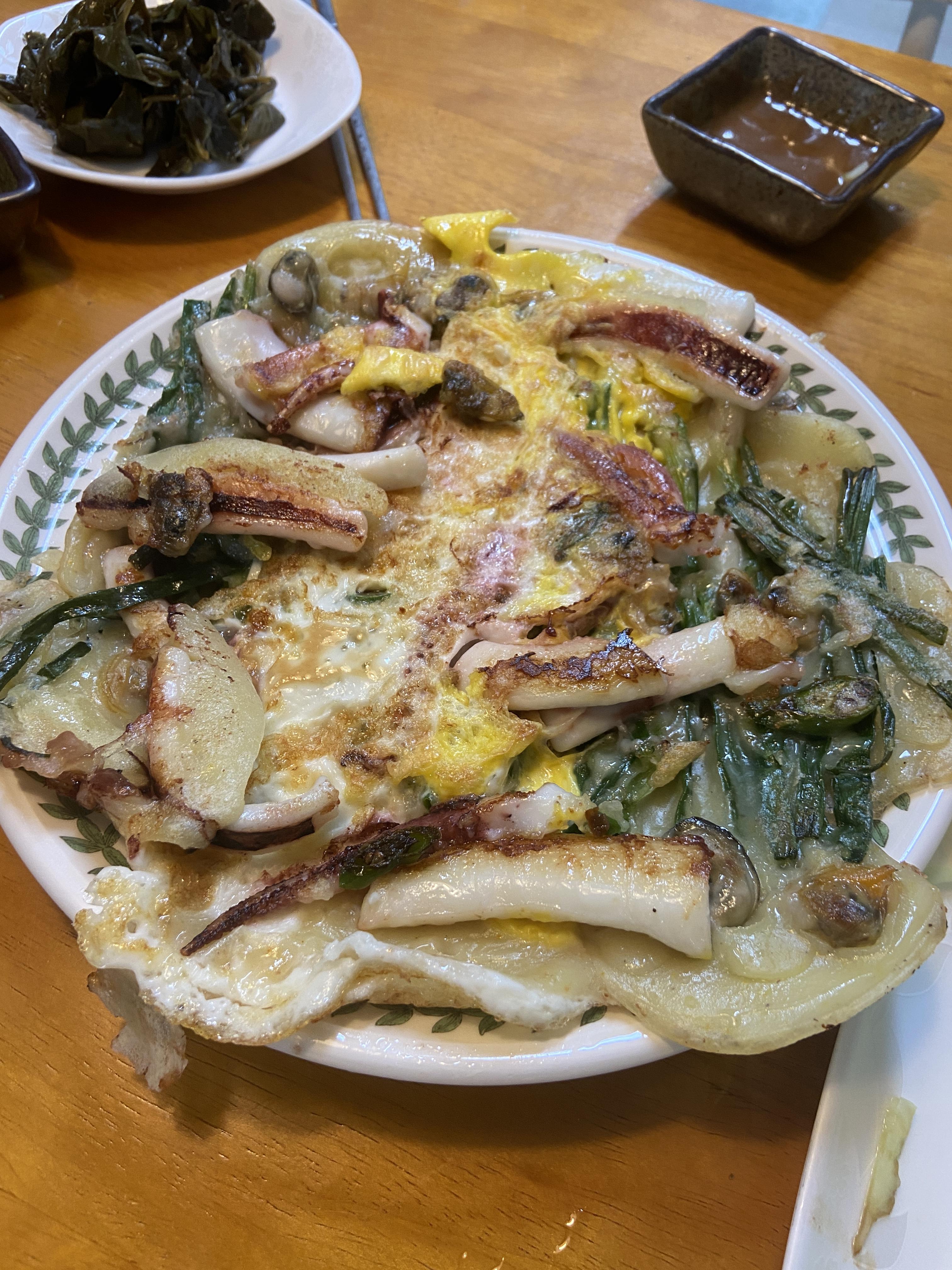 한입 베어물면 파의 향긋함과 오징어의 쫄깃함 굴의 바다향이 느껴지는 파전..결국 3장이나 부치고야 끝났습니다