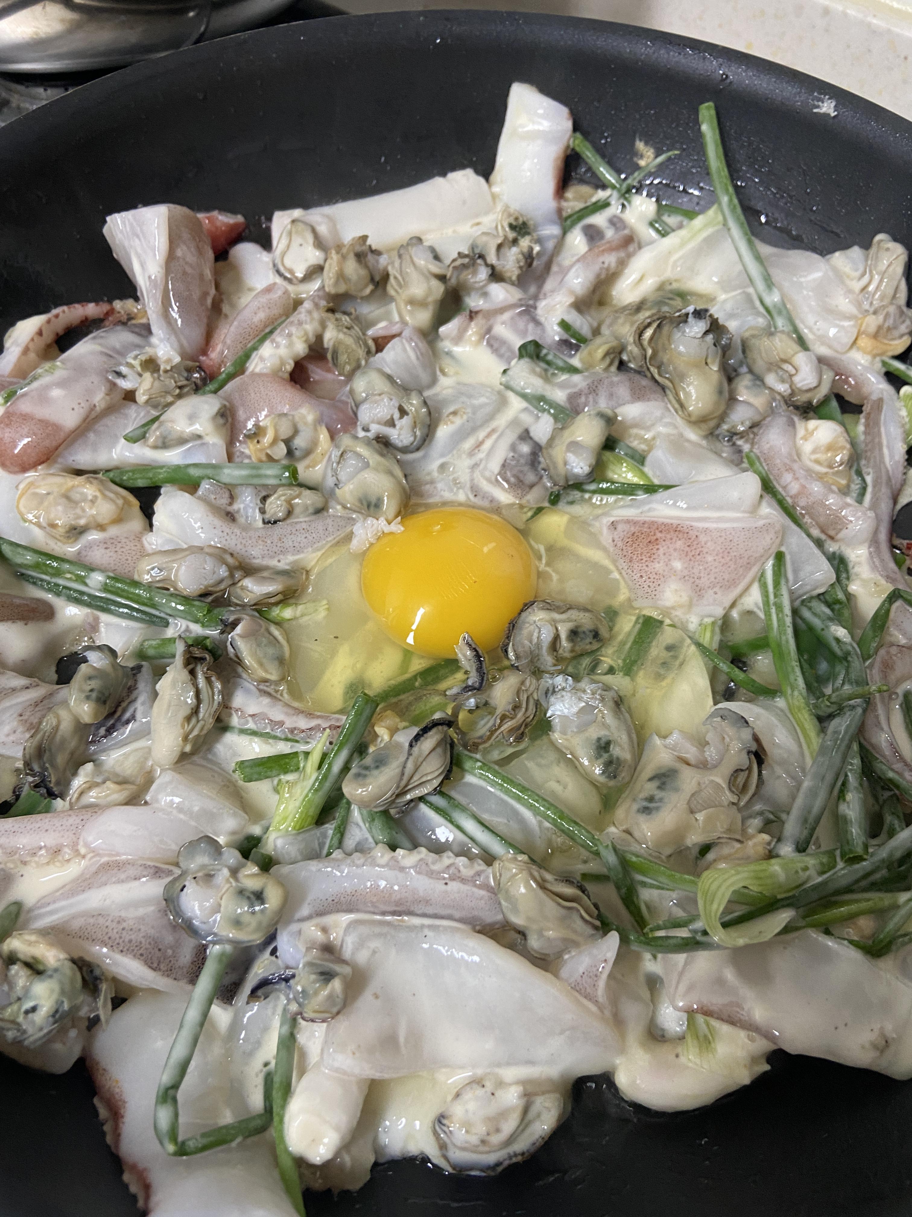 파와 오징어 조개 굴찐것 모두 투하