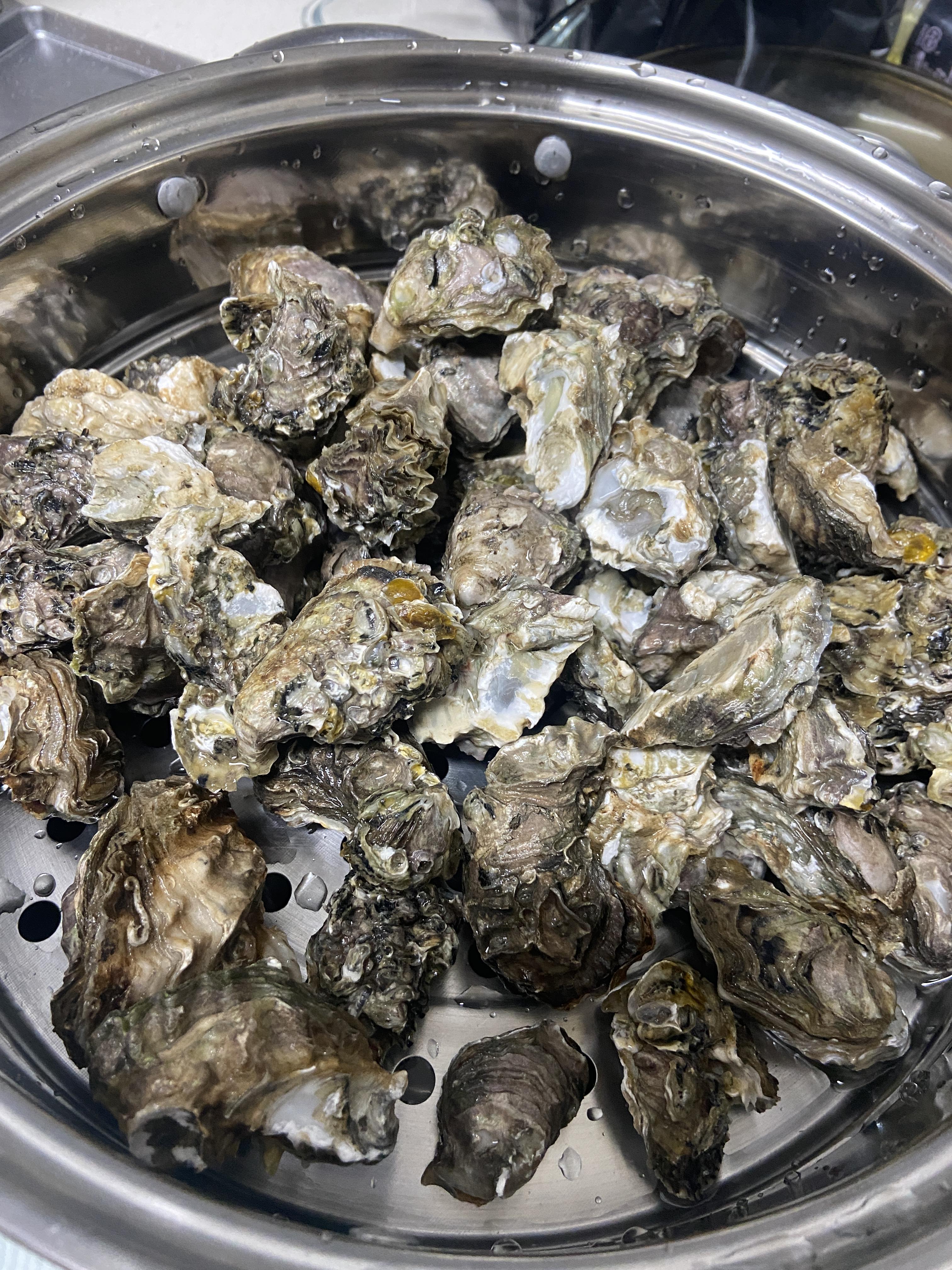 조개와 굴은 산 채로 뜯기 힘들어서 쪄서 살만 파냈어요
